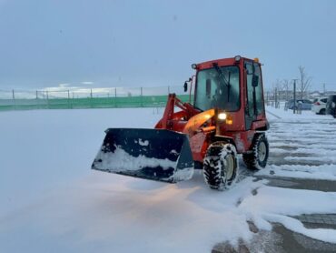 用務員は、早朝から除雪車を使って、子供たちの通り道を確保しています。