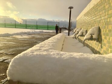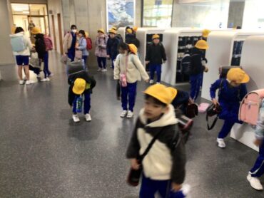 スクールバスで到着した子供たちも、足早に玄関に向かいます。
