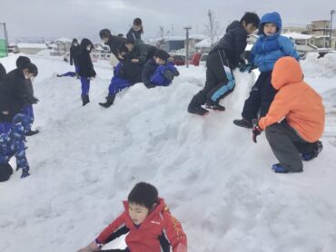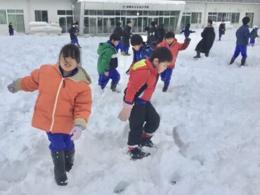 6年生も無邪気に雪遊びです。