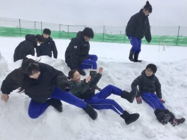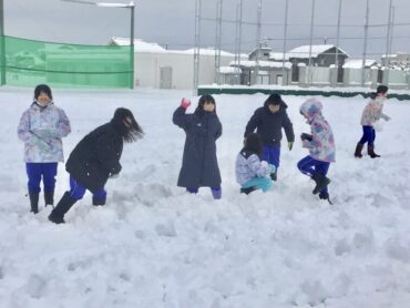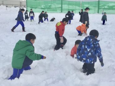 グラウンドにたくさん降り積もった雪に…