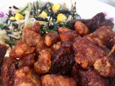 それに、”レバーと大豆のケチャップがらめ”に”小松菜とひじきのナムル”