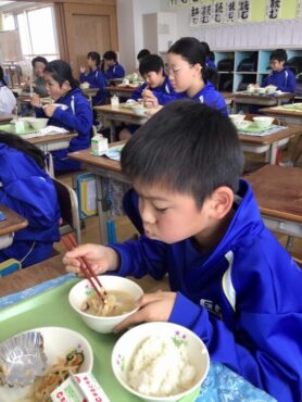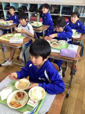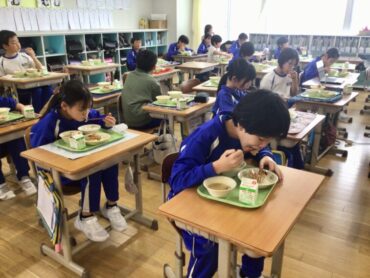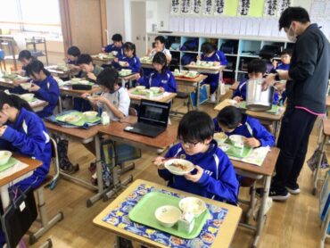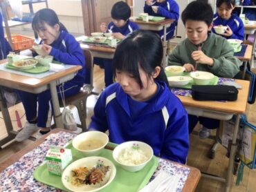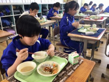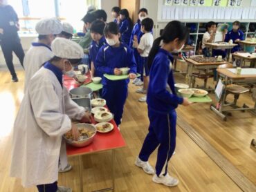 給食では、残食0を目指して、それぞれ自分に適した量を受け取り…