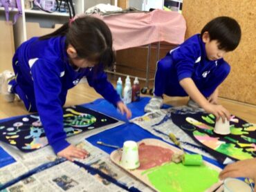 紙コップなどでスタンプしたりして…