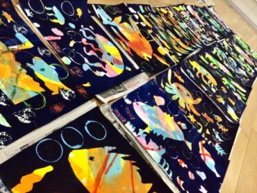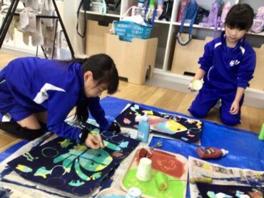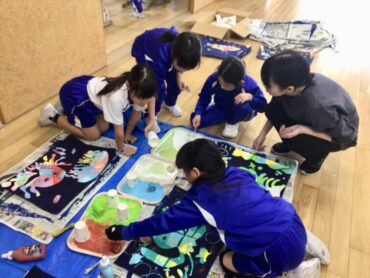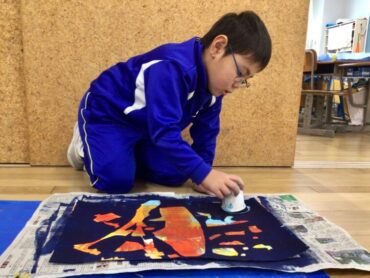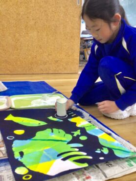1年生のステンシル版画が、完成を迎えようとしています。
