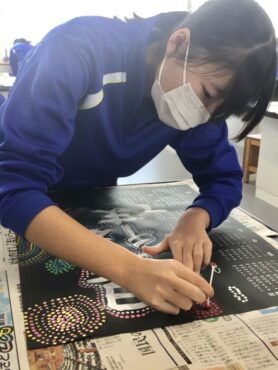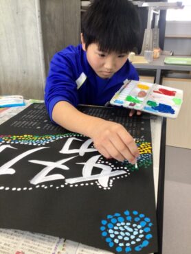 その周りを、アボリジニアートの技法を使って飾ります。