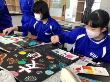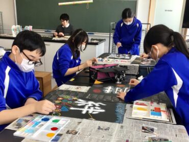 ここに、中学校で大切にしたい言葉を、白い絵の具で力強く書きました。