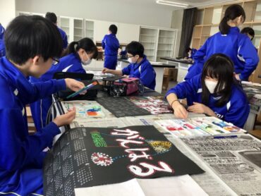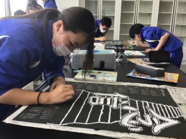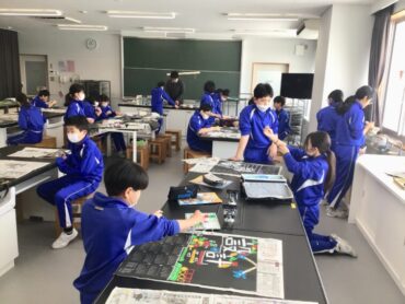 6年生が図工室で作品づくりに励んでいます。