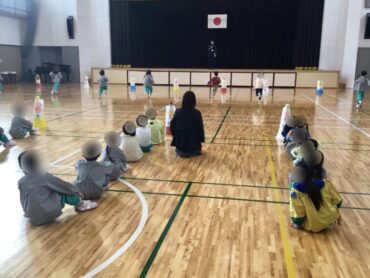その頃、新1年生は、体育館で”かもつれっしゃ”をしたり…