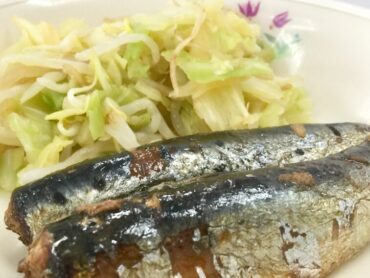 ”鰯の梅煮”と”キャベツともやしの和え物”