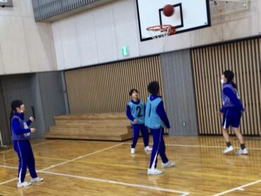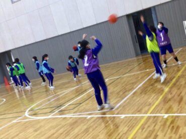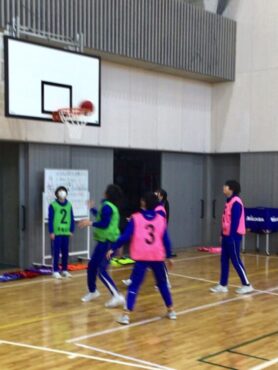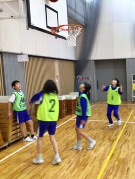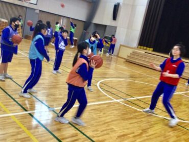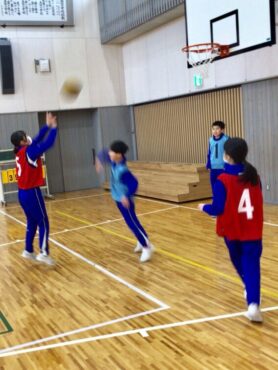 6年生がバスケットボールの学習に取り組んでいます。