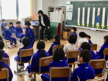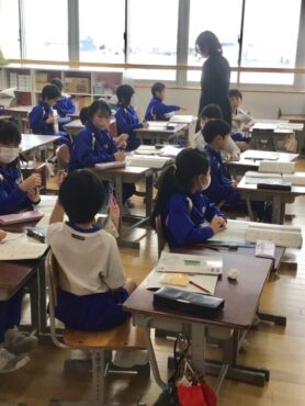 2026.2.7 1年生 2年生 学習参観① 【1年】 生活「もうすぐ2年生~できるようになったことはっぴょうかい~」 子供たちは、入学してからの成長を家の人に見てもらおうと、一生懸命発表に取り組んでいました。 【2年】 算数「分けた大きさのあらわし方をしらべよう」 ”1”を、同じ大きさに2つに分けた数の表し方について、折り紙を折ったり切ったりしながら操作を通して学んでいました。