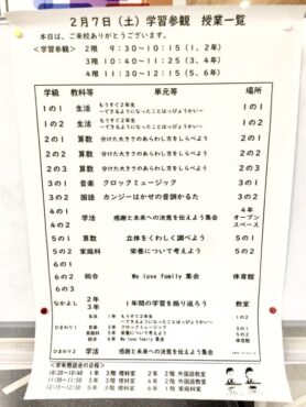 2月7日(土)の学習参観は、低学年・中学年・高学年に時間を分けて行います。