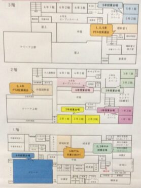 児童玄関にある掲示物で、時間と場所をご確認ください。