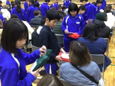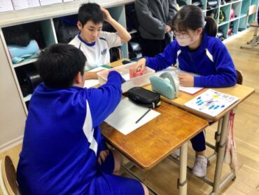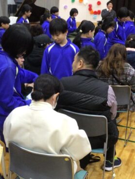 2026.2.7 5年生 6年生 学習参観③ 【5年】 算数「立体をくわしく調べよう」 様々な立体を手に取って立体を囲む面に着目しながら、相談して2つに仲間分けしていました。 家庭「栄養について考えよう」 「給食に、なぜ2分の1コッペパンが出るのか?」この難問について、栄養バランスに着目しながら考えを深めていました。 【6年】 総合「We love Family 集会」 小学校生活最後の学習参観は、家族にこれまでの”感謝”を伝えるために準備した集会でしたが、家族からの手紙を目にして、”感謝”の思いが一層深まる時間となりました。
