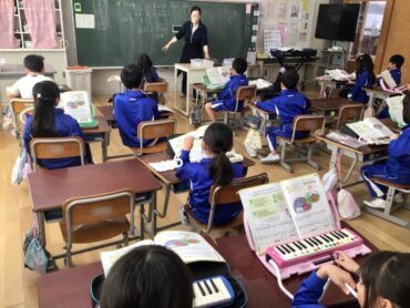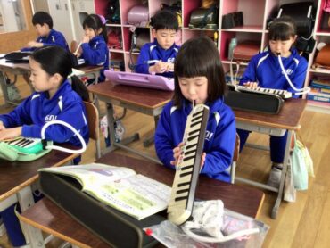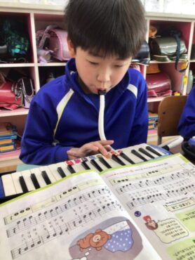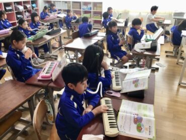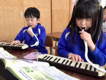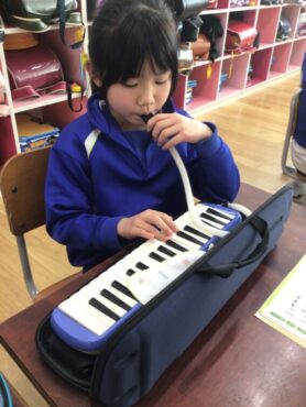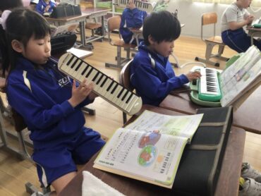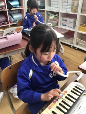 2年生の子供たちが、鍵盤ハーモニカを演奏しています。