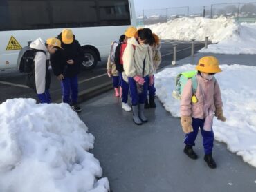 子供たちが降車して、気を付けながら玄関に向かいます。