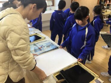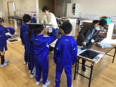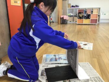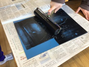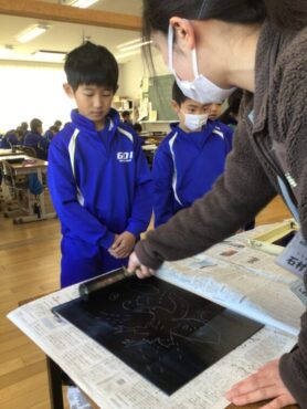 3年生が、版画作品づくりの”刷り”の作業に取り掛かっています。