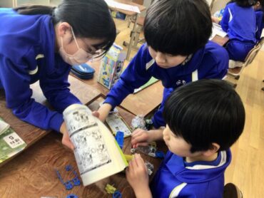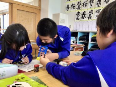 5年生の子供たちが、電磁石を使った実験に取り掛かりました。