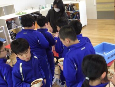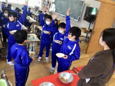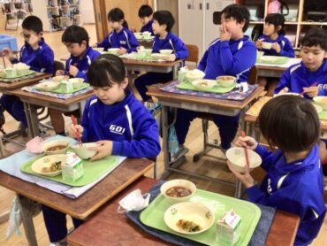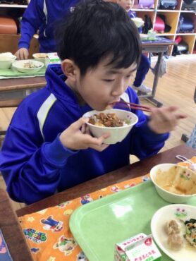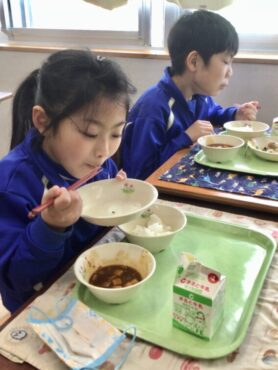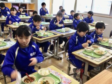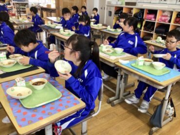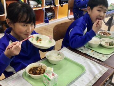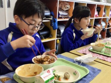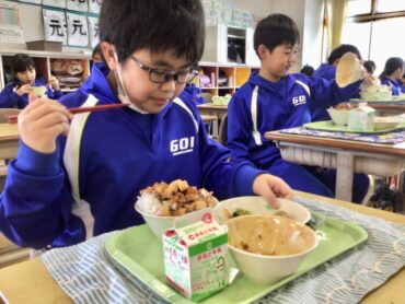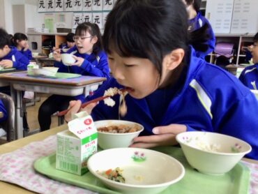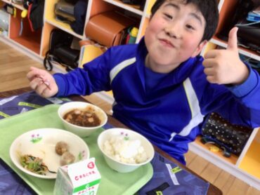 栄養満点の給食をモリモリ食べて…