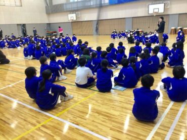 体育館に、4・5・6年生が集合し、「委員会引継ぎ式」が行われます。