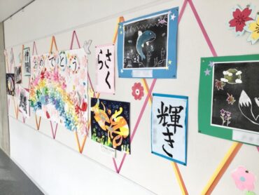 2026.2.24 全校生 職員作業 お祝い掲示 校舎内には、卒業のお祝い掲示が施されました。 各学年の代表の子供たちの作品が… 階段の踊り場や保健室前の掲示板を彩っています。 給食室前の掲示板もにぎやかに… 全校あがて、お祝いの気持ちを伝えます。 6年生のオープンスペースにも”おめでとう”の文字が… 卒業に向けた祝福ムードが、日に日に高まっています!