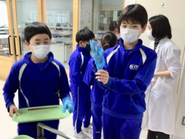 ビニル手袋を手にはめて…