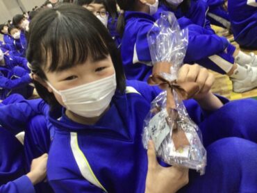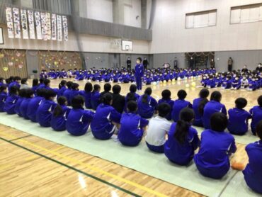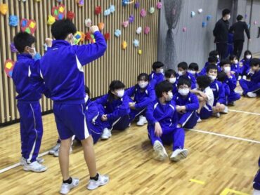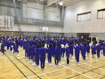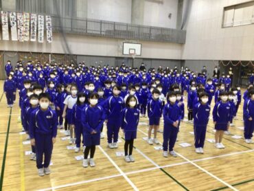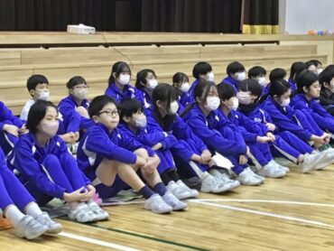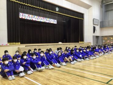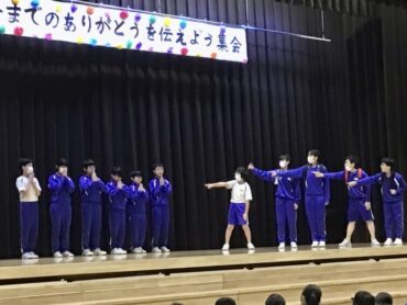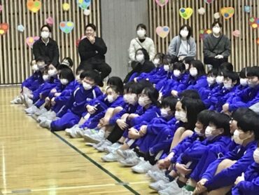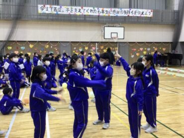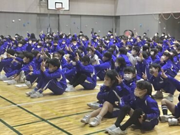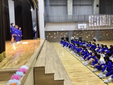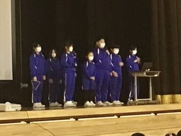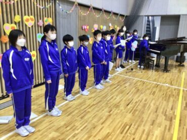 続く、全校合唱は、6年生への思いを歌詞に織り込んだ替え歌です。