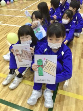 2年生の手には、6年生に渡す手紙が握られています。