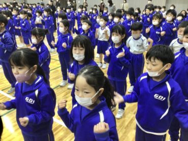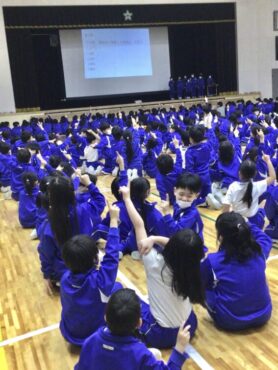 みんなで集会の目当てを確認して、心を一つに…