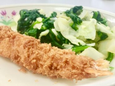 ”えびフライ”に”小松菜とキャベツの浸し”