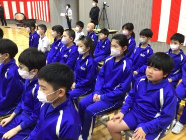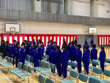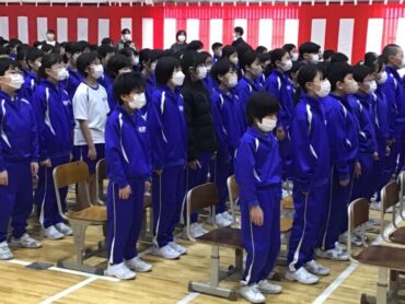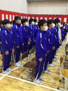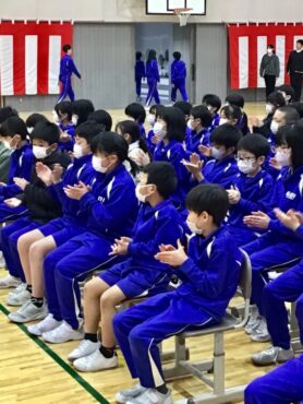 体育館は、紅白幕で囲まれ…