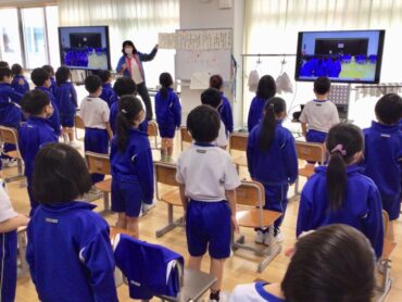 先生の問いかけに手をあげる子供たち…
