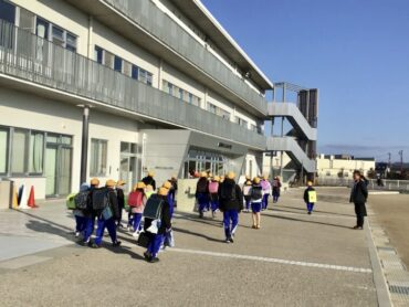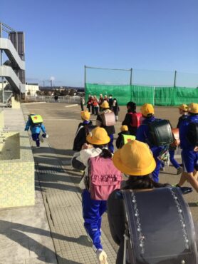 子供たちが、児童玄関の中へと入っていきます。
