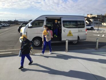 スクールバスで登校する子供たちも、到着しました。