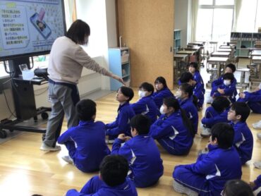SNSやスマートフォンなどの通信機器の使い方について、先生から話を聞きます。
